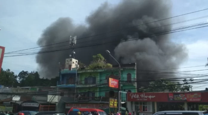Terkini.id, Bogor - Kebakaran terjadi di depan Ramayana Tajur, Bogor, Sabtu, 27 Maret 2021.