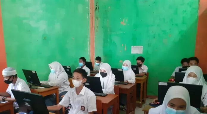 Terkini id, Bogor - Sekolah Menengah Atas (SMA) Puspa Bangsa menggelar Asesmen Nasional Berbasis Komputer (ANBK) dengan mengetatkan prokes kesehatan demi meminimalisir penyebaran Covid-19, Senin 27 September 2021.